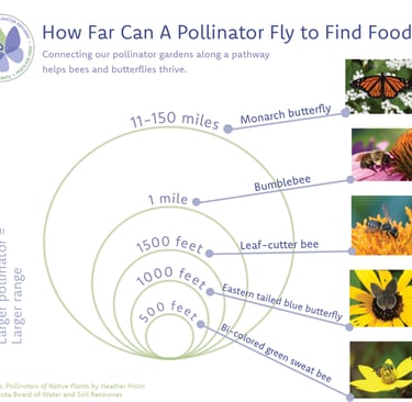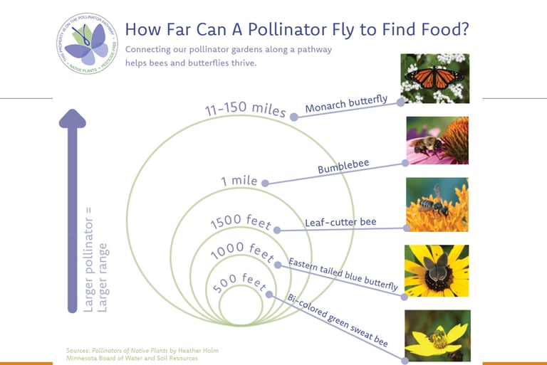 Holm, Heather, and Minnesota Board of Water and Soil Resources. How Far Can a Pollinator Fly to Find Food? Pollinators of Native Plants, Minnesota Board of Water and Soil Resources, https://bwsr.state.mn.us/pollinator-resources. Accessed 28 Oct. 2025.